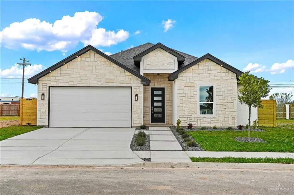 Beautiful new construction home in the desirable Silverstone Heights subdivision in Edinburg, TX. This move-in-ready 3 bedroom, 2 bathroom home offers 1,577 living sqft with an open-concept layout, high ceilings, and elegant gold accent fixtures throughout. The kitchen includes refrigerator, stove range, and microwave, all conveying with the sale. The primary suite features a double vanity, illuminated accent mirrors, walk-in closet with built-in cabinetry, and multi-tone lighting for a warm ambiance. Built with durable Hebel stucco, offering superior strength compared to traditional foam stucco. Additional features include a fully fenced yard, epoxy-coated garage floor, generator connection, and Tesla/EV charging connection. A perfect blend of modern design and functionality.