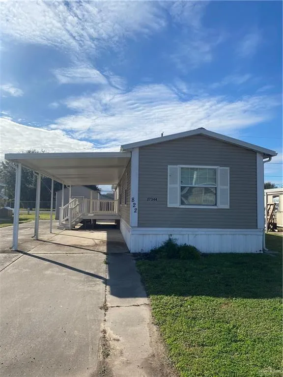 A welcoming home renovated and maintained 2 bedroom and 2 bathroom single wide mobile home. A spacious and open kitchen with renovated wood flooring, and with plenty of cabinetry. Living room with carpeted area. Exquisite color scheme throughout the home, and with a captivating cedar wood detailed ceiling in the second bedroom, and bathroom. Attached extended carport, and a vacant storage unit on property ready to be used! 55+ Community Park.
