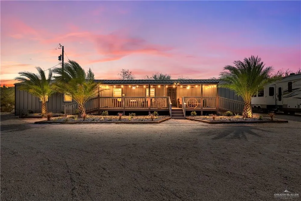 Experience the serene ranch life in the North McAllen/Edinburg, Texas area, just minutes away from A&M and UTRGV. This property spans approximately 4.83 acres and is fully equipped for your needs. As you enter through the elegant iron and masonry fence, lined with palm trees that guide you to the ranch, you'll find the first pad is prepared for your luxury home, and septic tanks have been installed. Additionally, the property includes a renovated mobile home located in the second section. This home features three bedrooms, two bathrooms, a full kitchen, and a spacious living area, all adorned with high-end finishes. For animal lovers, the property boasts five horse stalls designed for your beloved horses, as well as housing for livestock and cattle, accommodating goats, cows, emus, llamas, and more.